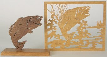 When you've finished cutting the pattern it will measure 9 inches high x 11 inches wide. The Desktop mounted fish is 7 inches high. We recommend using 1/8 inch to 1/4 inch thick material of your choice. Imagine this Jumping Bass scroll saw pattern made in a beautiful Cherry or Mahogany.