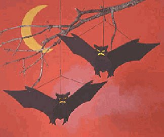 Have fun this Halloween by dangling a few of these winged critters from a tree or house overhang. Paint them black with yellow yeys that almost glow in the dark. These bats have a 24" wing span.